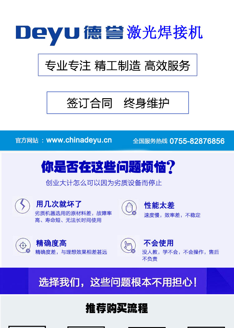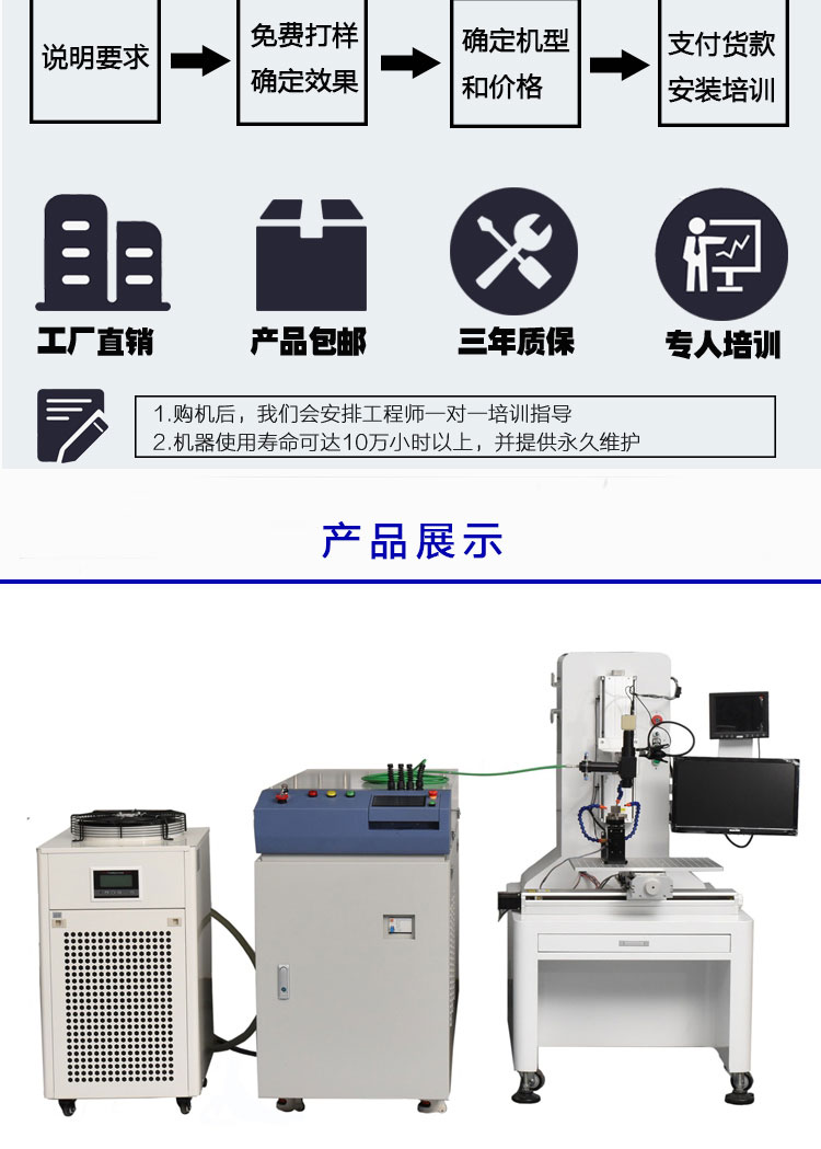 激光焊接机厂家12年专注激光焊接设备出产,焊接效率高、结果好、操做简单便利,从动激光焊接机采用原拆进口配件,焊接质量不变获得保障。完全自从设想出产,研发、拆卸、发卖具有世界一流程度的细密激光焊接机及其从动化处理方案,激光功率:200W、300W、400W、500W、600W、700W、800W德誉激光专注激光从动化焊接机12年,钛合金等均可使用。产物深受泛博用户的必定和表扬,如600W以上固体激光处理动力电池密封钉焊接报废率高的难题;目前已达到国际同类产物的先辈程度。金属材料如不锈钢,实现高效焊接,